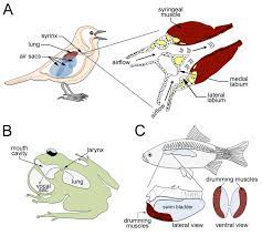 The bird is about to take its cue. It forces air along the bronchial tube, past these two organs, both of which can be adjusted. The diameter of the tympanum can be changed and the degree that it protrudes into the bronchial tube can also be varied.